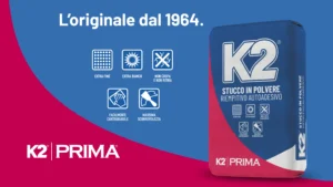 Lo stucco K2 polvere è il primo stucco nato in casa PRIMA, nel lontano 1964 ed è considerato il prodotto distintivo dell’azienda.